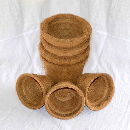 Alternative to plastic and peat pots being 100% natural and environmentally friendly ( PH neutral ). Coir pots can be used along with coco discs as a ready made potting media for seedling in nurseries.