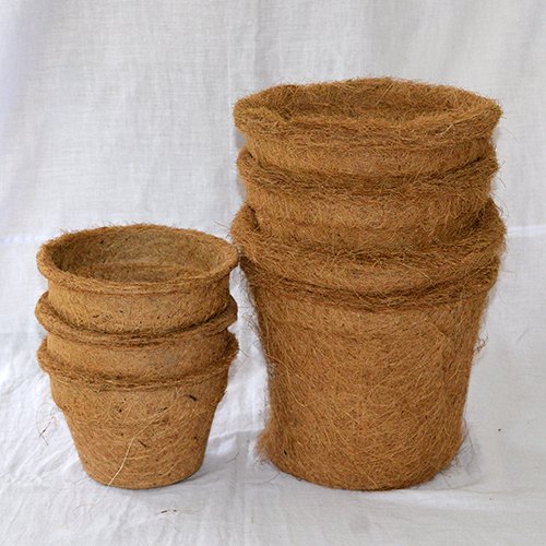 Coir pots are prominent in horticultural centers to plant seedlings, and to propogate small plants in tissue culture techniques. They are also very popular among nurseries due to the convenience of replanting without removing the pot. When plants are grown in a coco coir pot the roots quickly penetrate the pot walls.